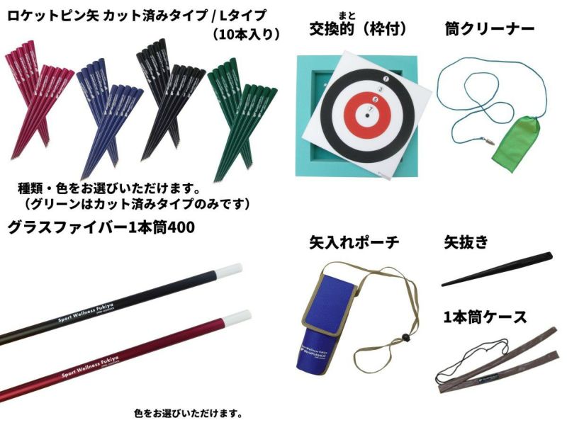 入門セット(ロケットピン矢+グラスファイバー1本筒400)のセット内容