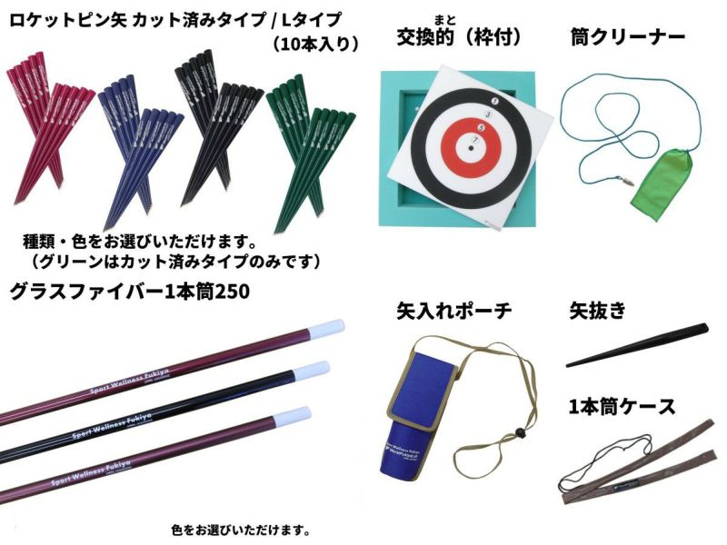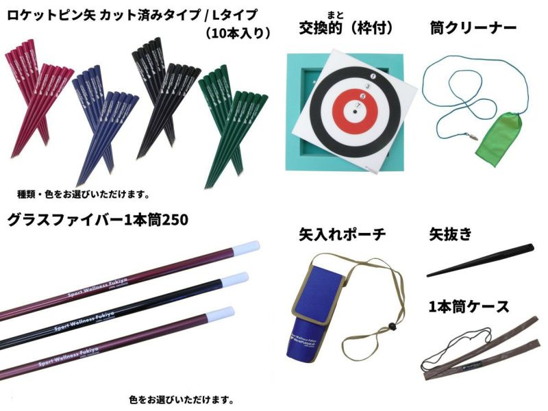 入門セット(ロケットピン矢+グラスファイバー1本筒250)のセット内容
