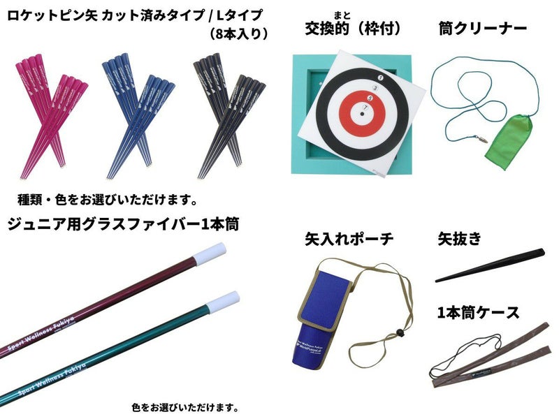 入門セット(ロケットピン矢+ジュニア用グラスファイバー1本筒)のセット内容