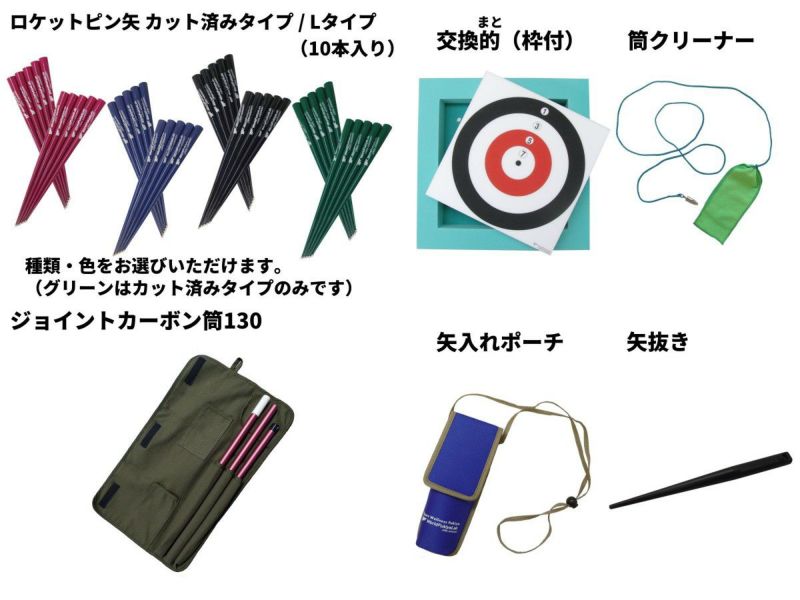 入門セット(ロケットピン矢+ジョイントカーボン筒130)のセット内容
