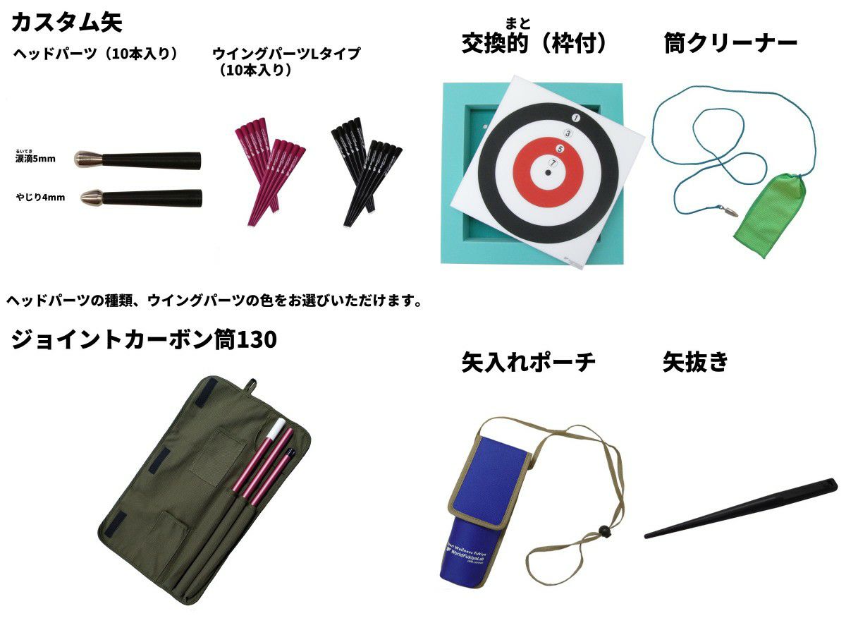 他の画像を見る 入門セット(カスタム矢+ジョイントカーボン筒130) 価格 ¥ 39,900 税込 一般社団法人日本スポーツウエルネス吹矢協会公認の入門セットです。 初めての方でもすぐに楽しめるよう、必要な用具を一式揃えています。 詳細を見る お気に入りに登録する