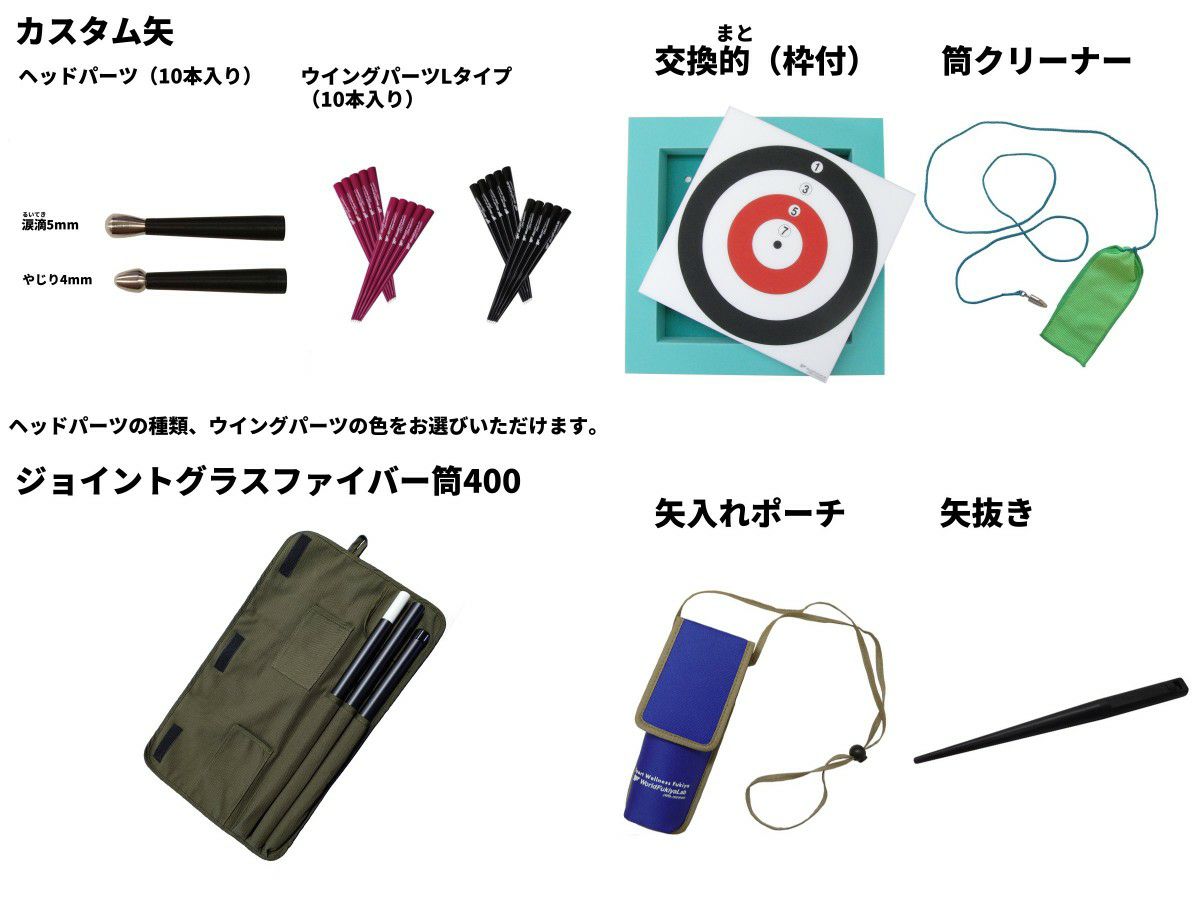 他の画像を見る 入門セット(カスタム矢+グラスファイバー1本筒400) 価格 ¥ 32,300 税込 一般社団法人日本スポーツウエルネス吹矢協会公認の入門セットです。 初めての方でもすぐに楽しめるよう、必要な用具を一式揃えています。 詳細を見る お気に入りに登録する