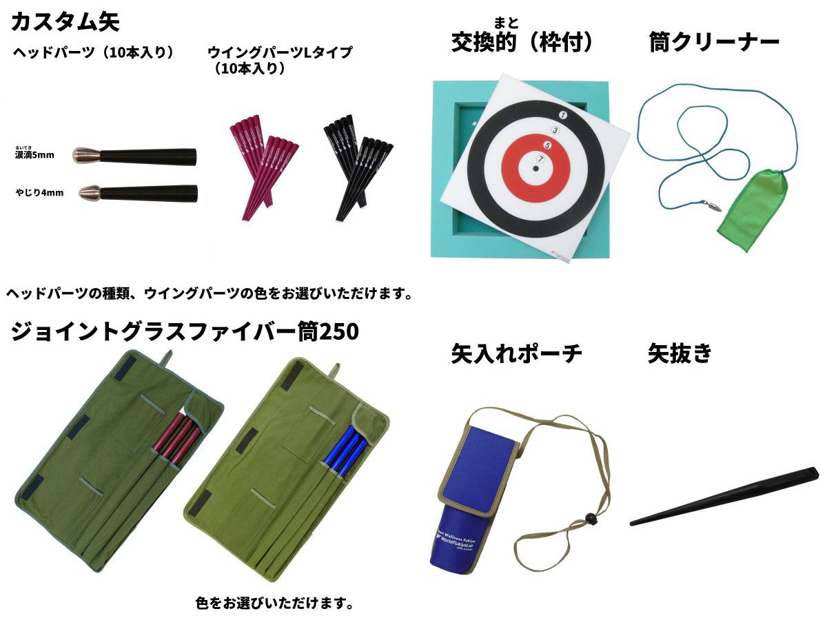 他の画像を見る 入門セット(カスタム矢+ジョイントグラスファイバー筒350) 価格 ¥ 38,600 税込 一般社団法人日本スポーツウエルネス吹矢協会公認の入門セットです。 初めての方でもすぐに楽しめるよう、必要な用具を一式揃えています。 詳細を見る お気に入りに登録する