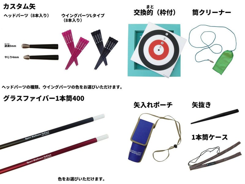 入門セット(カスタム矢+グラスファイバー1本筒400)のセット内容