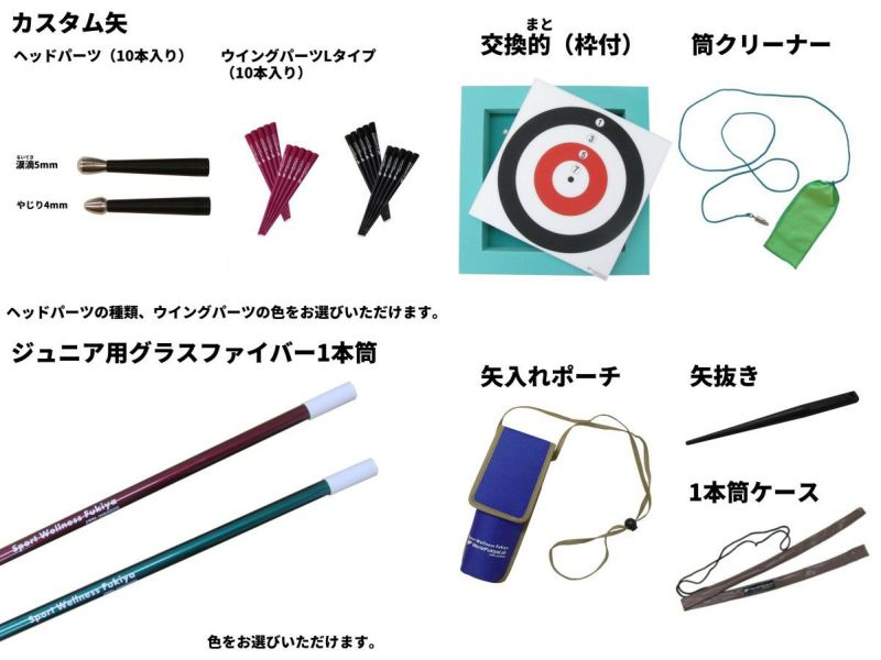 入門セット(カスタム矢+ジュニア用グラスファイバー1本筒)のセット内容
