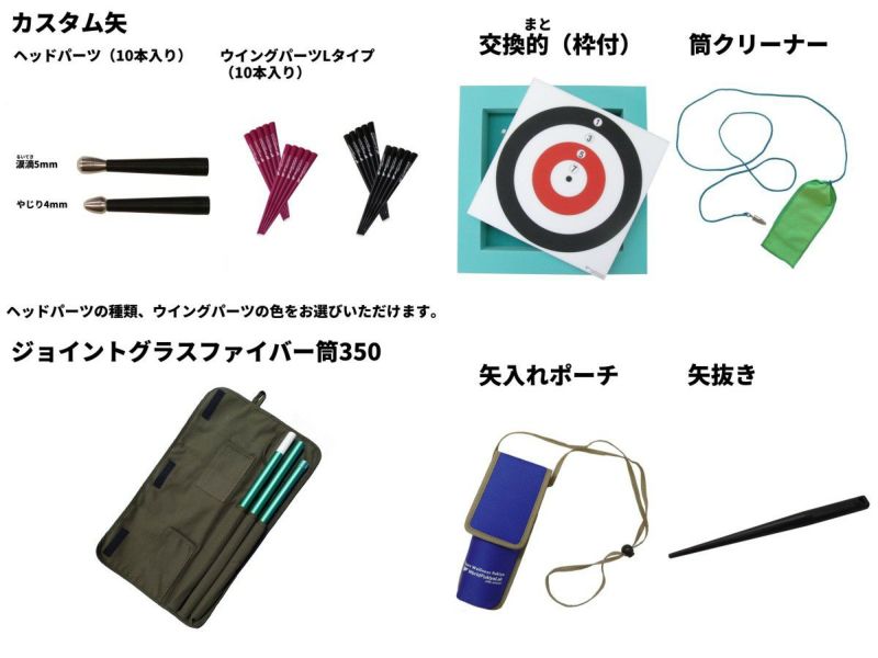入門セット(カスタム矢+ジョイントグラスファイバー筒350)のセット内容