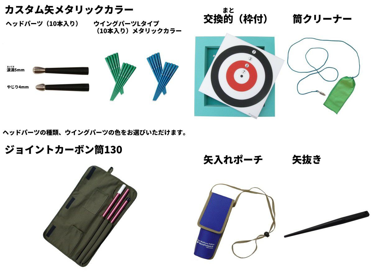 他の画像を見る 入門セット(カスタム矢メタリックカラー+ジョイントカーボン筒130) 価格 ¥ 40,200 税込 一般社団法人日本スポーツウエルネス吹矢協会公認の入門セットです。 初めての方でもすぐに楽しめるよう、必要な用具を一式揃えています。 詳細を見る お気に入りに登録する
