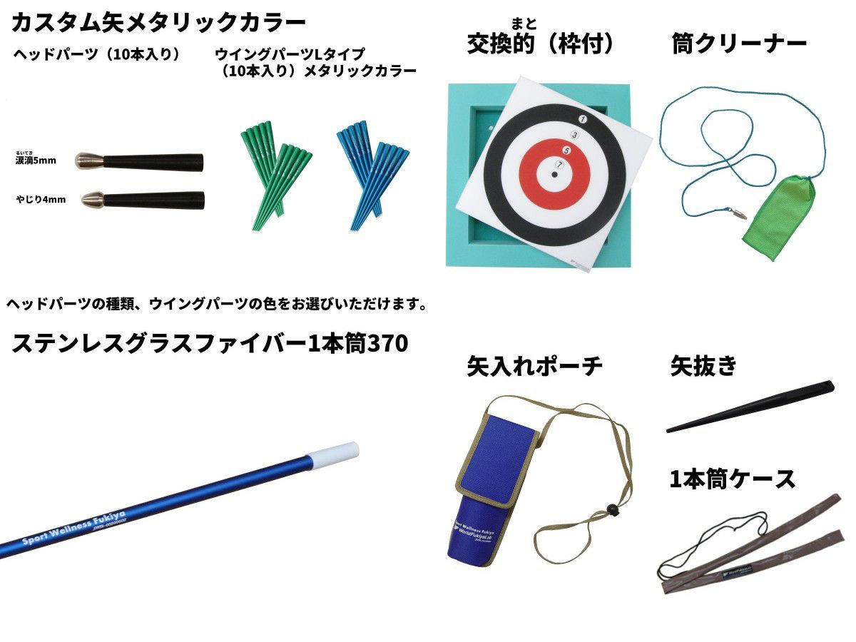 他の画像を見る 入門セット(カスタム矢メタリックカラー+ステンレスグラスファイバー1本筒370) 価格 ¥ 36,200 税込 一般社団法人日本スポーツウエルネス吹矢協会公認の入門セットです。 初めての方でもすぐに楽しめるよう、必要な用具を一式揃えています。 詳細を見る お気に入りに登録する