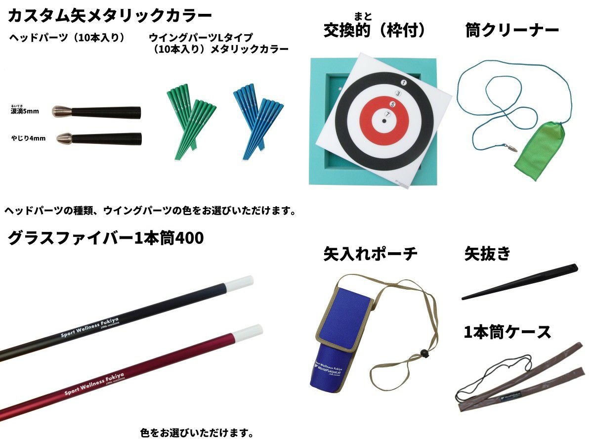 他の画像を見る 入門セット(カスタム矢メタリックカラー+グラスファイバー1本筒400) 価格 ¥ 32,600 税込 一般社団法人日本スポーツウエルネス吹矢協会公認の入門セットです。 初めての方でもすぐに楽しめるよう、必要な用具を一式揃えています。 詳細を見る お気に入りに登録する