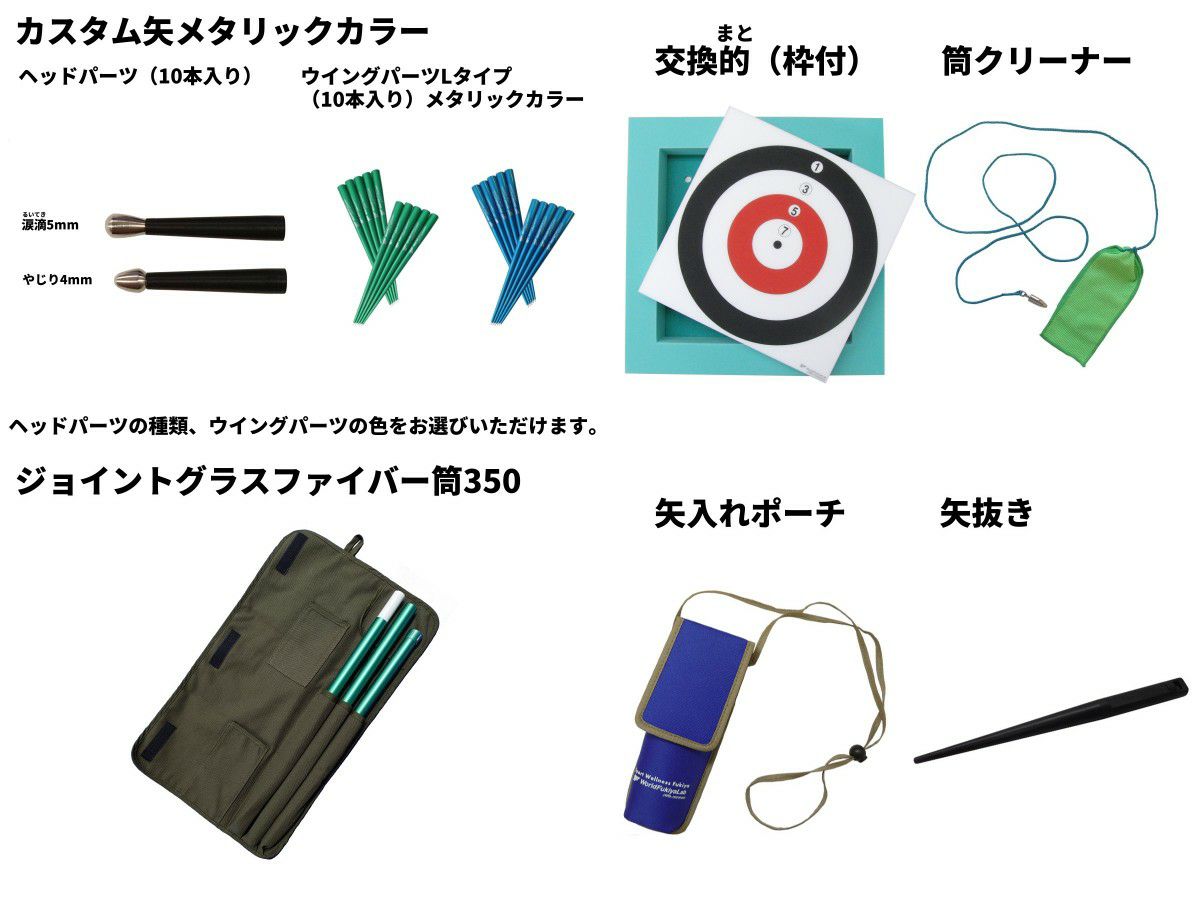 他の画像を見る 入門セット(カスタム矢メタリックカラー+グラスファイバー1本筒250) 価格 ¥ 25,500 税込 一般社団法人日本スポーツウエルネス吹矢協会公認の入門セットです。 初めての方でもすぐに楽しめるよう、必要な用具を一式揃えています。 詳細を見る お気に入りに登録する