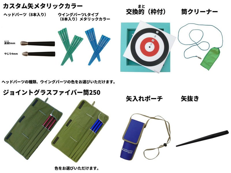 入門セット(カスタム矢メタリックカラー+ジョイントグラスファイバー筒250)のセット内容