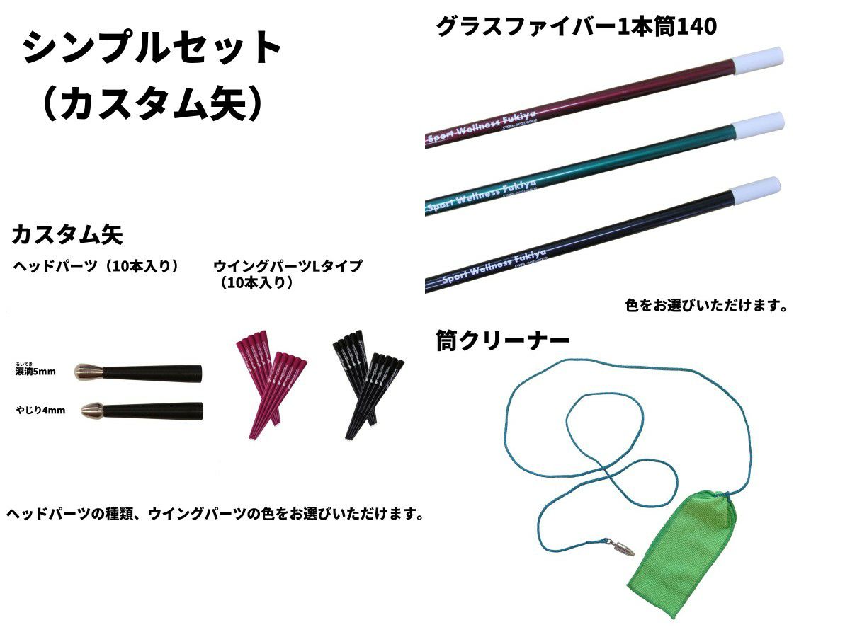 他の画像を見る シンプルセット(カスタム矢+グラスファイバー1本筒140) 価格 ¥ 12,000 税込 スポーツウエルネス吹矢をするのに必要最低限な用具を合わせたセットです。 入門セットとは違い、筒はグラスファイバー1本筒140のみとなります 詳細を見る お気に入りに登録する