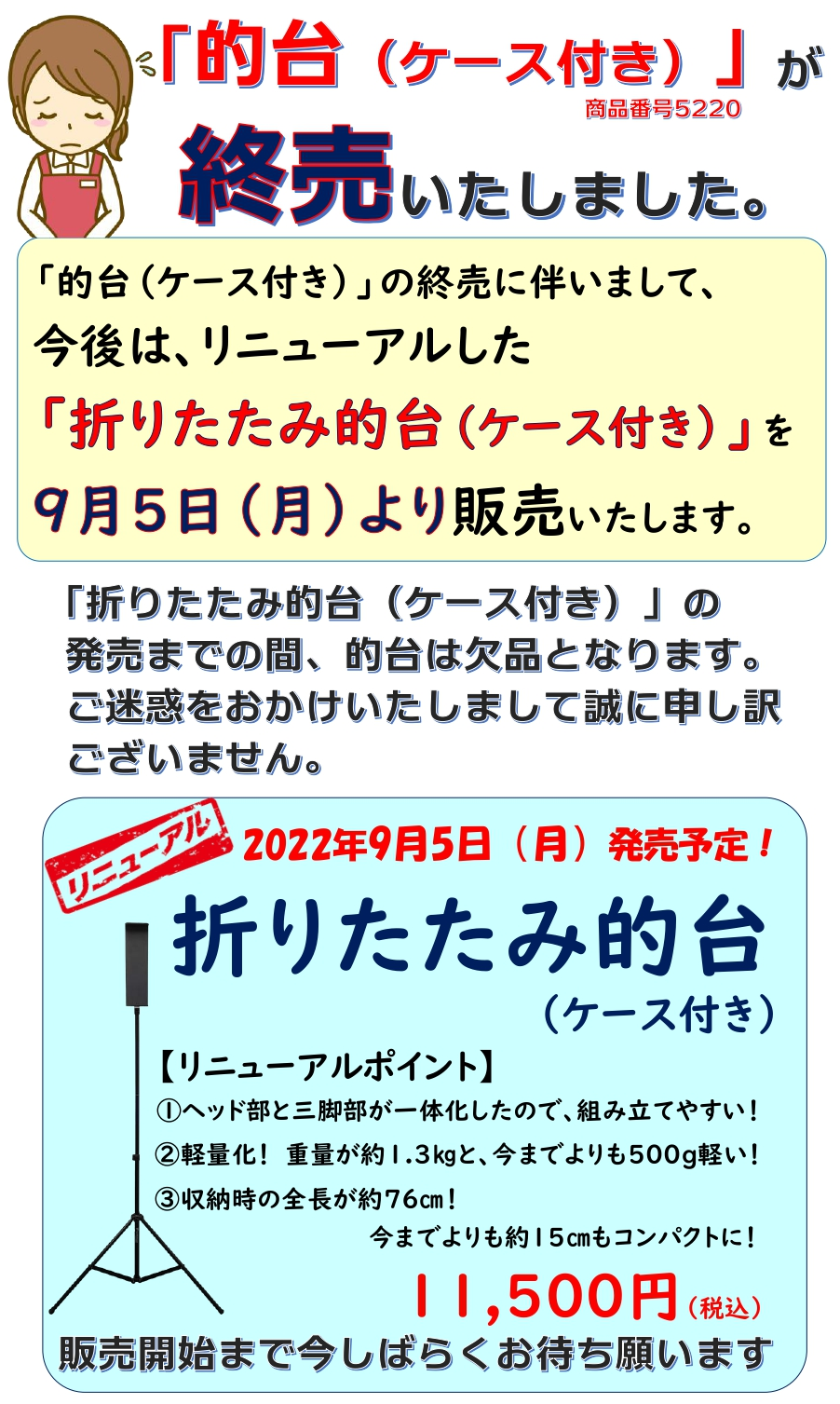 なお、的台につきましては「折りたたみ的台(ケース付き)」とリニューアルした上で、9月5日(月)より販売する予定となっております。