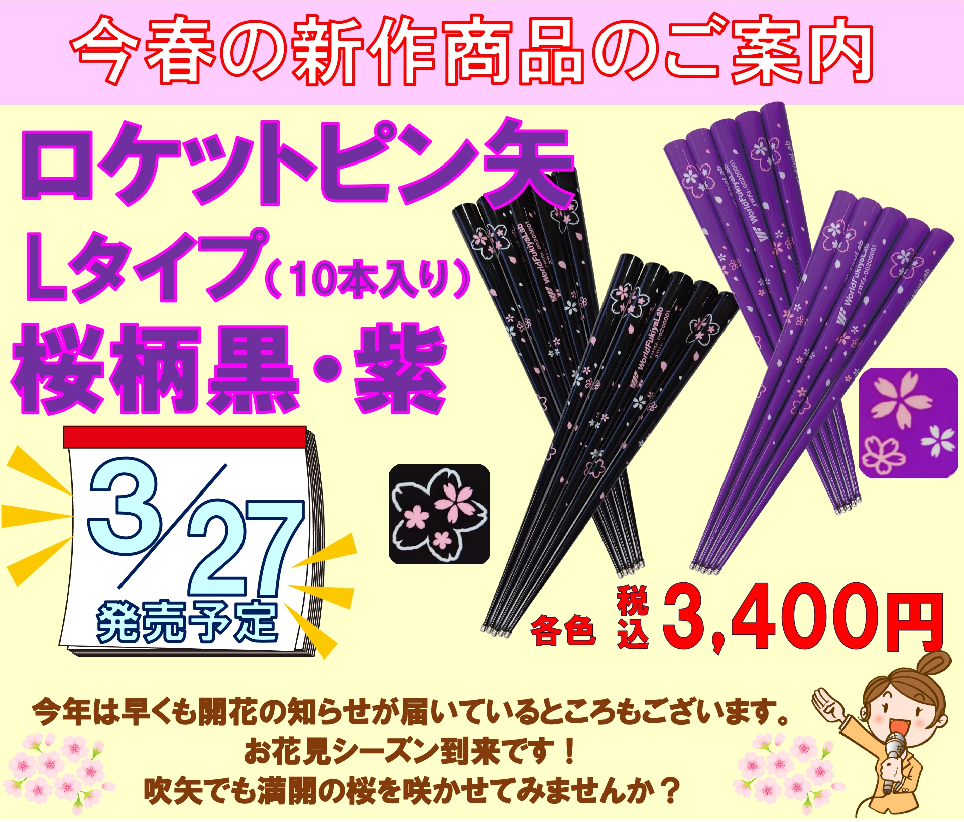 ●ロケットピン矢Lタイプ桜柄黒・桜柄紫